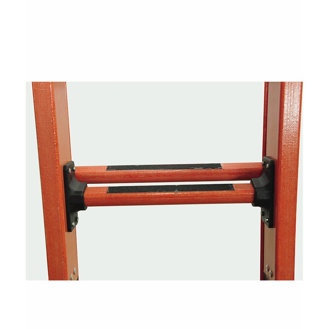 As escadas extensíveis rebitadas isoladas (EFDI) são escadas 100% ISOLADAS, compostas por duas partes: a parte fixa e a parte extensível. A parte extensível é içada por meio de uma corda travando a catraca nos degraus rebitados, assim regulando sua altura até o máximo permitido pelos limitadores. São leves, com baixa absorção de água e não condutoras de eletricidade.